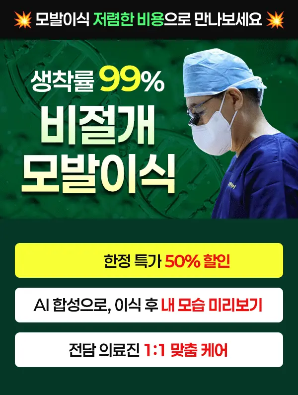 - - 10월 한정 비절개 모발이식 반값 파격 할인, 천모에 99만원